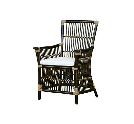 Columbus er en stilfuld spisestol i sort flettet rattan fra Artwood. Serien Columbus er en meget populær serie med stole og karmstole i forskellige farver. Stolens design giver et elegant udtryk og er perfekt til spisestuen. Siddehynde til ekstra komfort er inkluderet ved købet. Stolen har en siddehøjde på 50 cm. Fra armlænet til gulvet er der 65 cm.